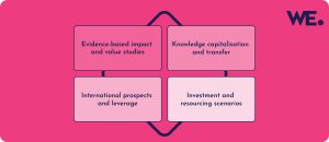 With over 25 years of experience working with policy makers, funders, universities and industry, WECD has played a significant role in informing and shaping innovation and knowledge exchange thinking that drives and unlocks economic growth. WECD uses this wealth of experience, insights and networks in the public and private sectors to develop unique packages of support for UK universities to help: gather and present robust evidence, produce impactful case studies and new insights to inform policy makers, support knowledge transfer and partnerships, assess local markets and international prospects, and develop future growth scenarios and implications for investment and resourcing.